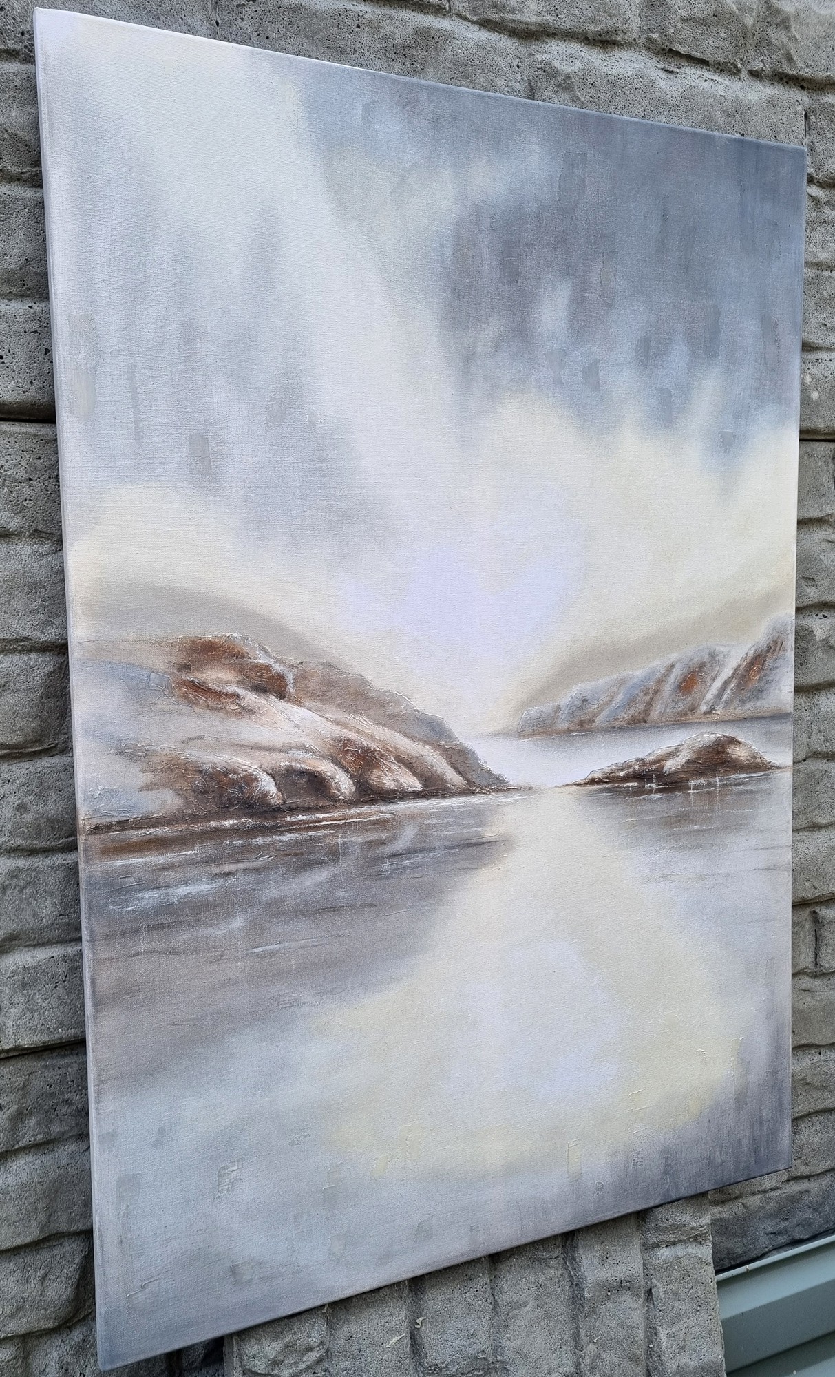 Obraz olejny na płótnie "W górach 2". Wymiary 100x70cm. Na obrazie wyraźnie widoczna struktura.