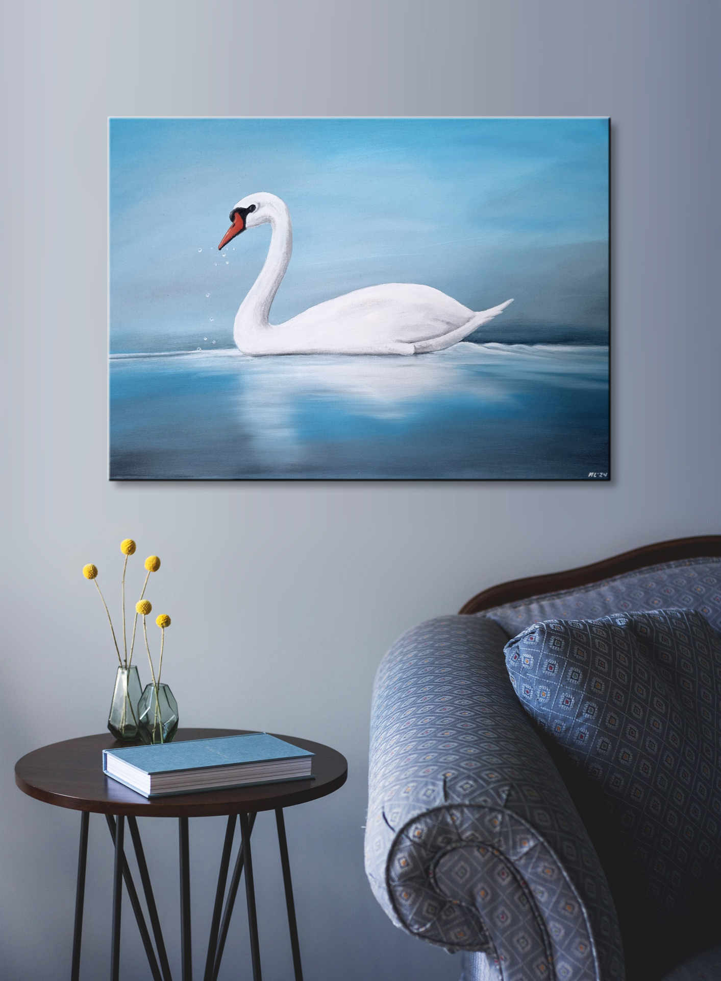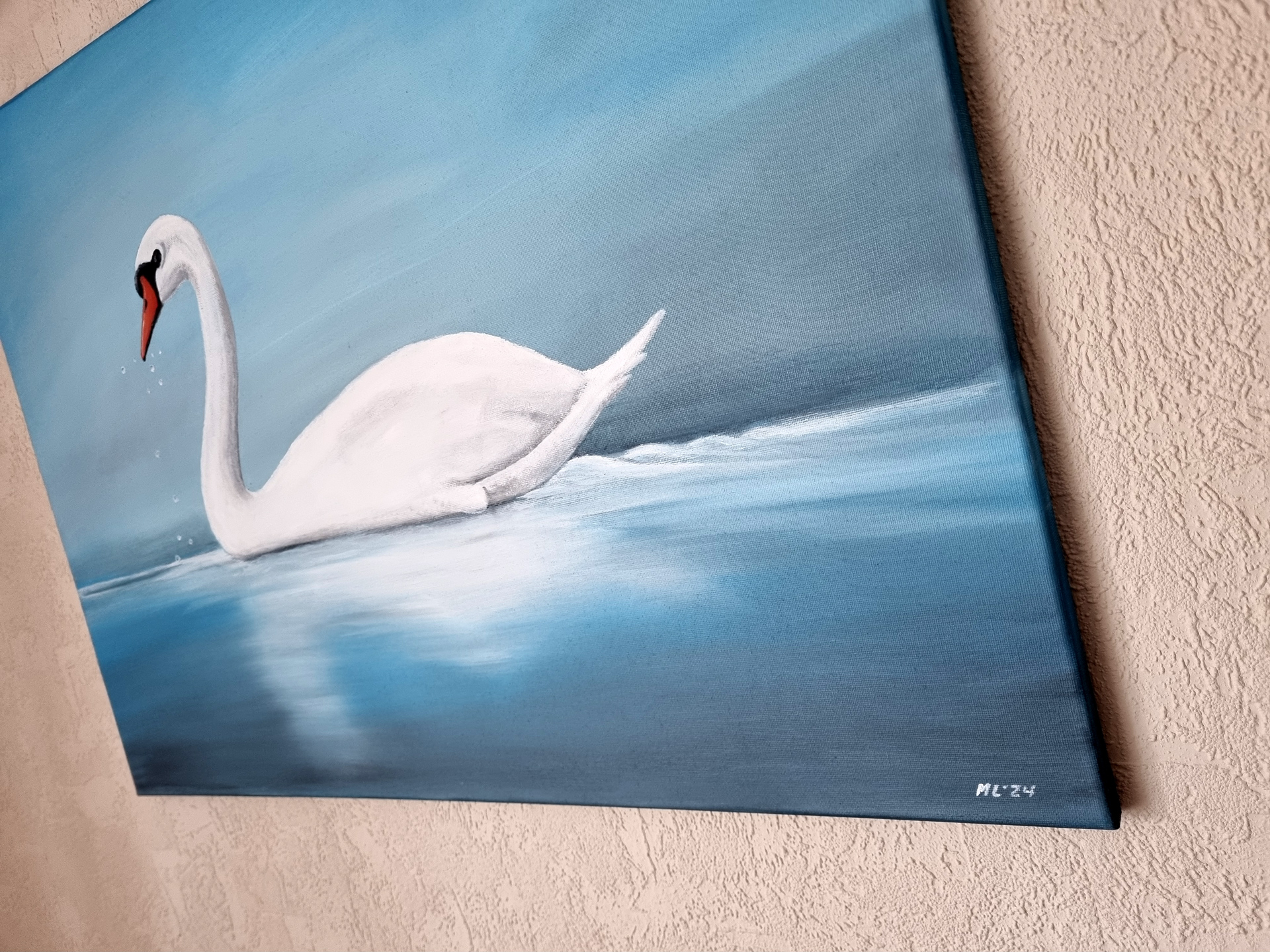 Ręcznie malowany obraz akrylowy na płótnie. Tytuł obrazu - "Łabędź"